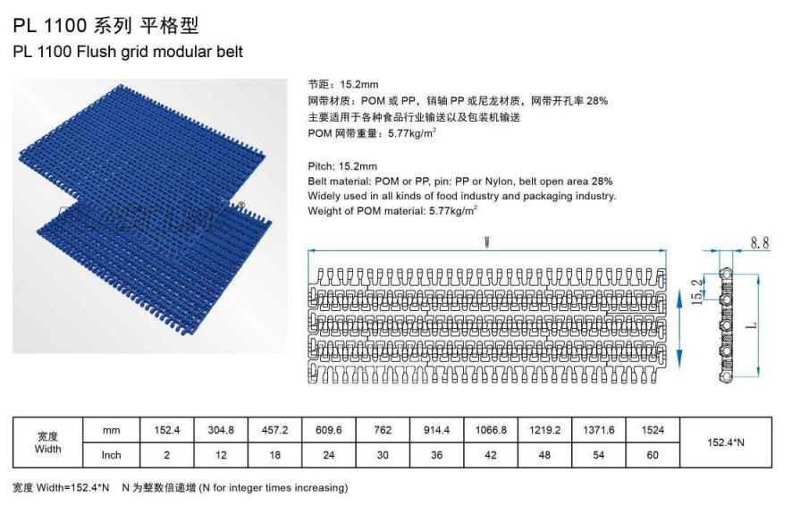 Cinturón modular de la cuadrícula de descarga PL 1100