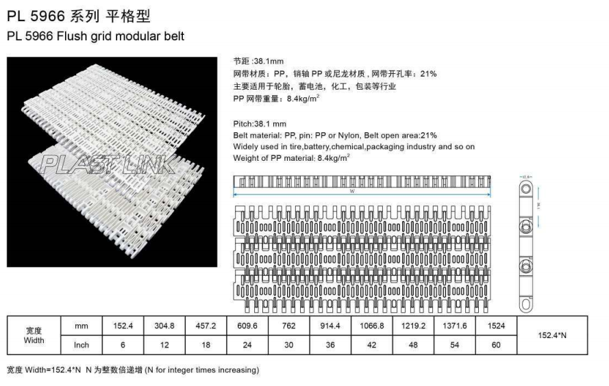PL820 ANTI - statique à charnière Single Straight Slat Chain