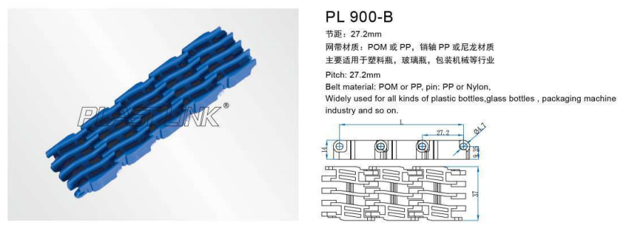 PL 900 courroie modulaire plate perforée
