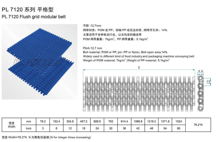 PL7100 Flex Flush Grid Modular Belt with Positrack