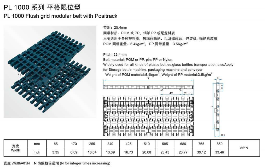 PL 1000フラットトップモジュラーベルト