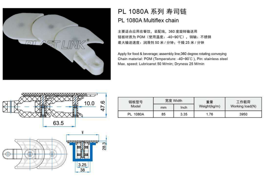 PL820アンチ-静的シングルヒンジストレートスラットトップチェーン