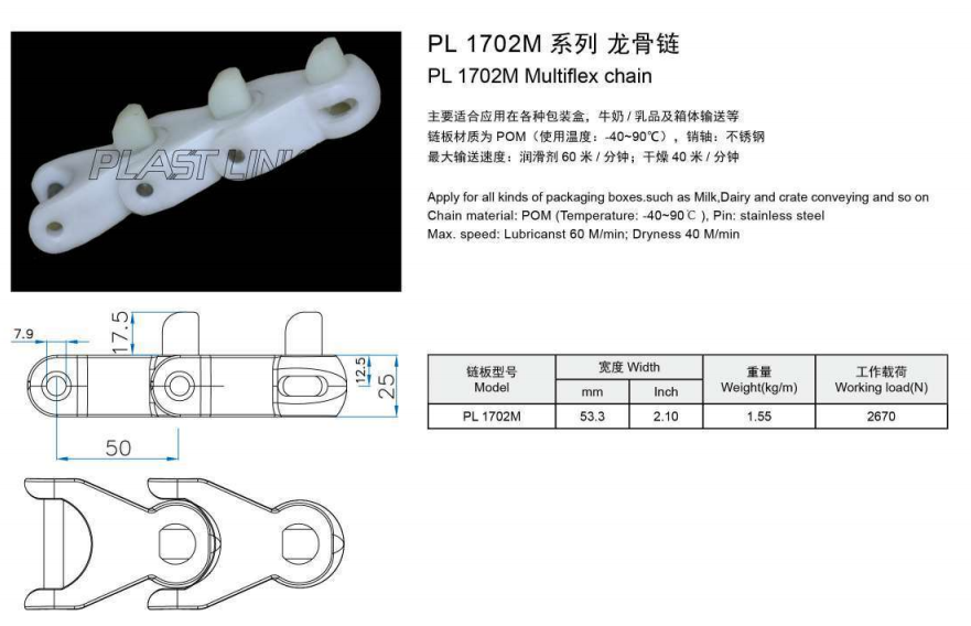 PL820アンチ-静的シングルヒンジストレートスラットトップチェーン