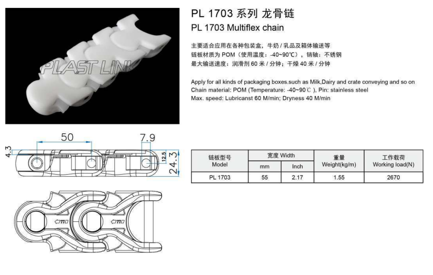 PL820アンチ-静的シングルヒンジストレートスラットトップチェーン