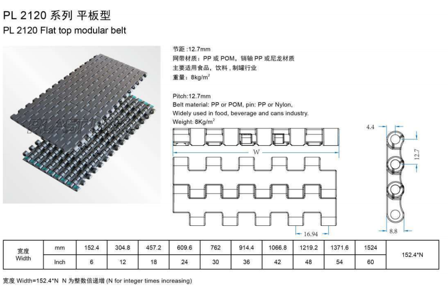 PL 812FHステンレス鋼ゴム製の表面ストレートトップチェーン