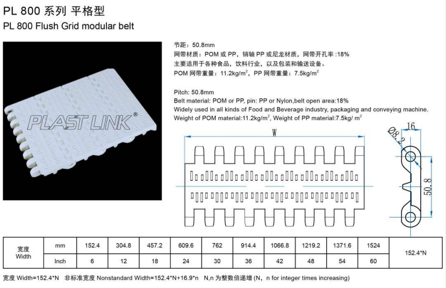 PL 812FHステンレス鋼ゴム製の表面ストレートトップチェーン