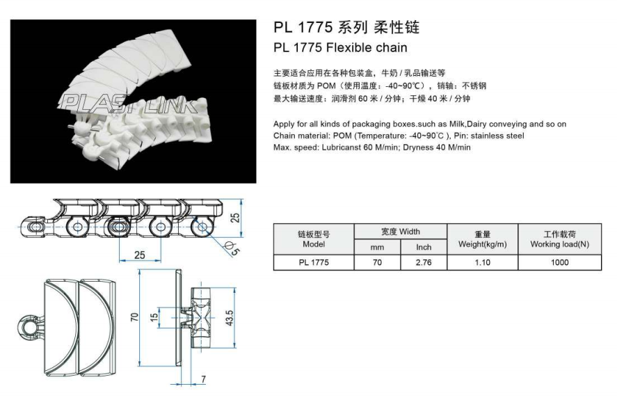 PL820アンチ-静的シングルヒンジストレートスラットトップチェーン