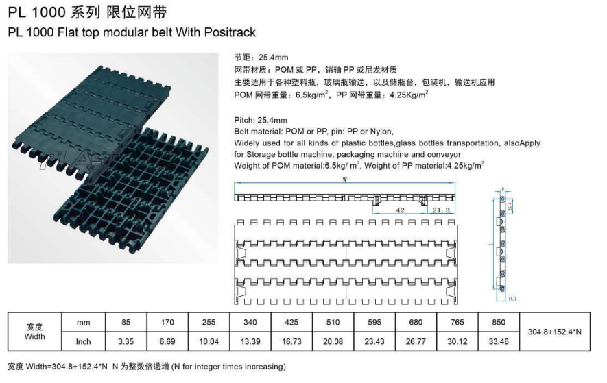 PL 900 천공 된 평면 상단 모듈 식 벨트