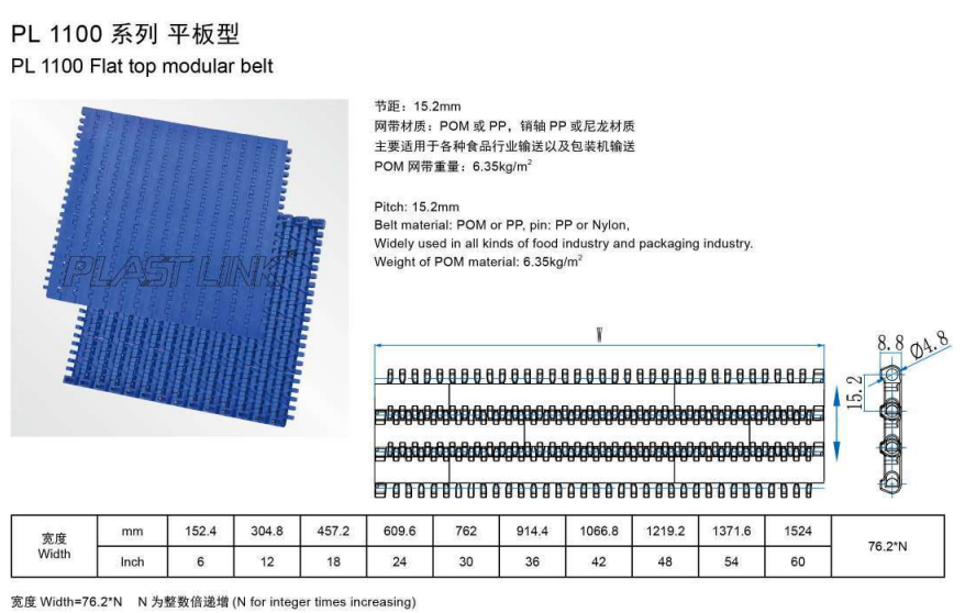 PL 900 천공 된 평면 상단 모듈 식 벨트