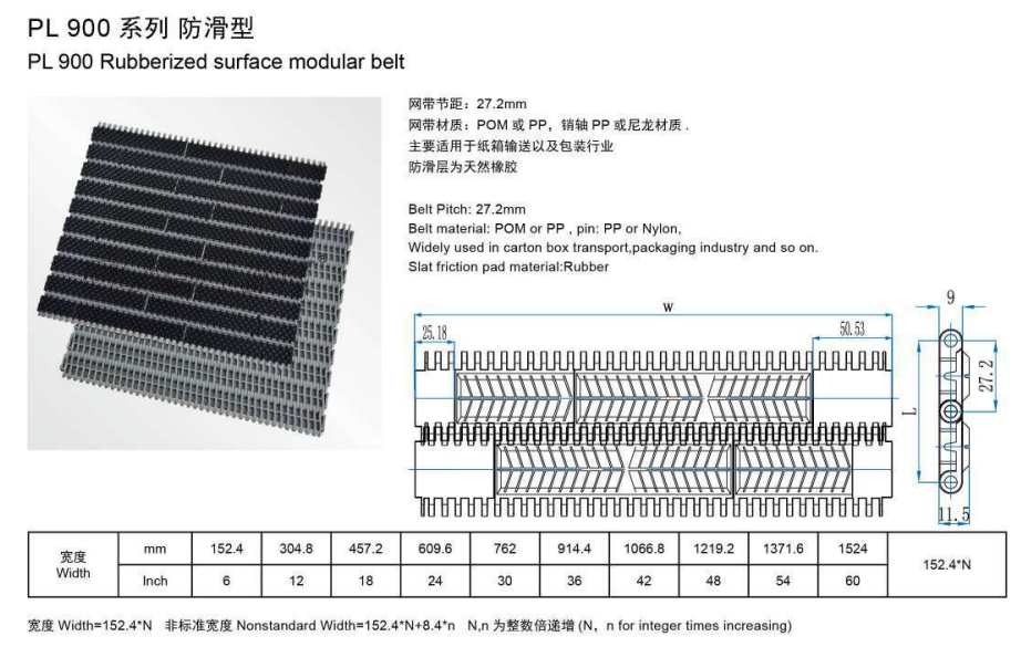 PL 900 고무 표면 모듈 식 벨트