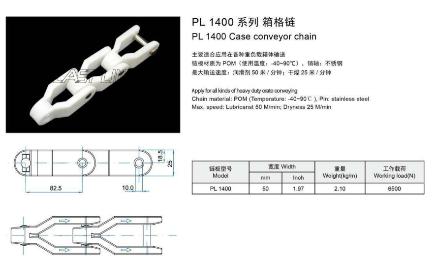 PL1400 케이스 컨베이어 체인