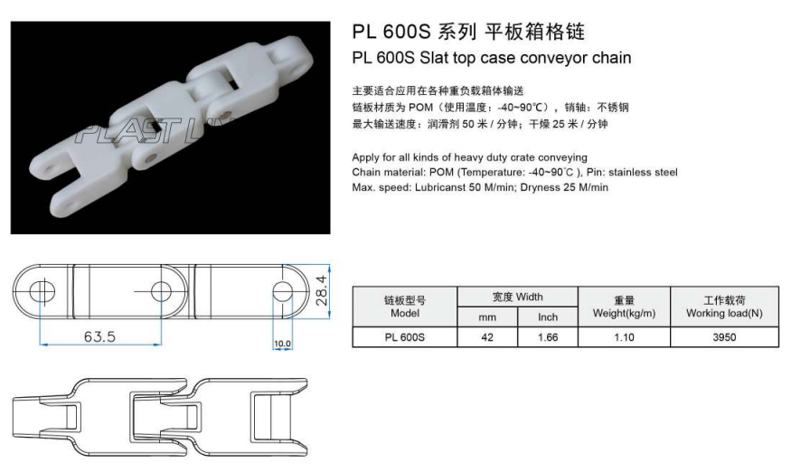 PL600 케이스 컨베이어 체인