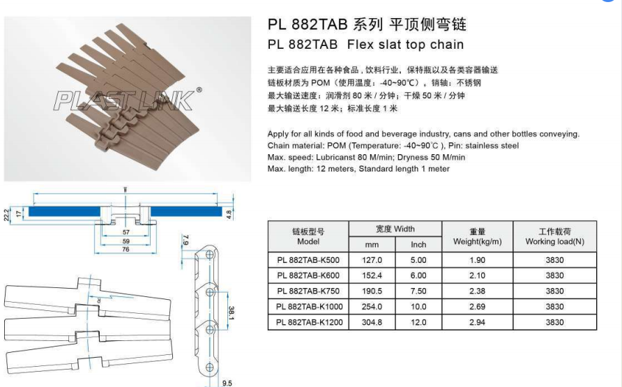 PL880TAB 플렉스 슬랫 상단 체인