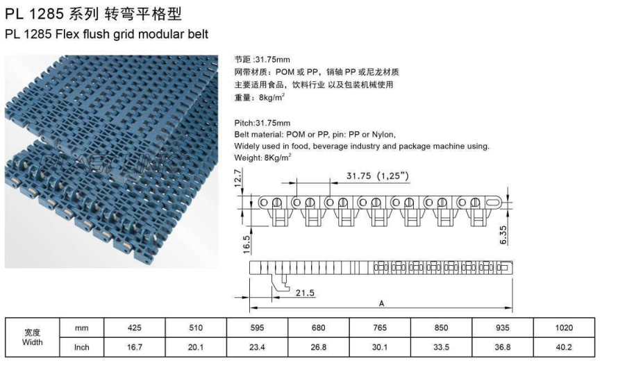 Pl880Tab Flex Slat Top Chain