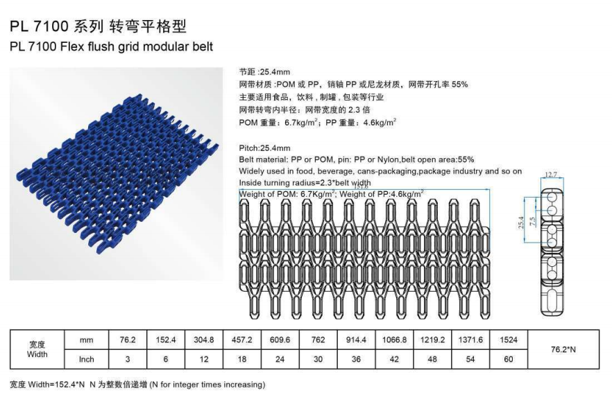 PL7100 Flex flush grid modular belt