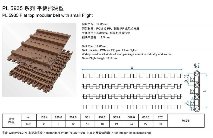 PL 5935 модульный ремень с плоским верхним верхним краем с небольшим полетом