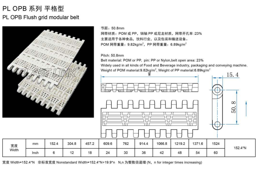 PL 900 перфорированный модульный ремень с плоским верхним верхним краем