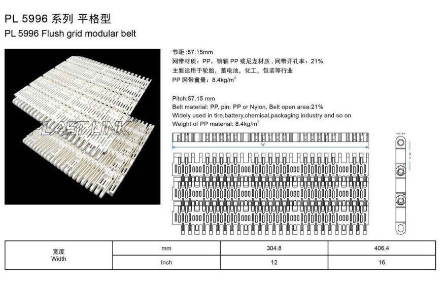 PL 900 перфорированный модульный ремень с плоским верхним верхним краем